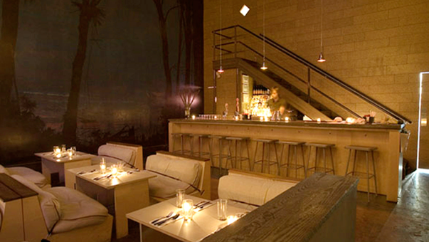 The ‘front room’ of Monkeytown is more conventionally designed, for table dining seating and also includes a bar. As is advertised by the venue: “Experimental cuisine and classic dishes from a country that doesn’t exist is served. Every cuisine and every ingredient is at play. The laboratory is open”. A commissioned permanent artist’s mural is presented on one wall; other areas are reserved to exhibit circulating local artist installations.